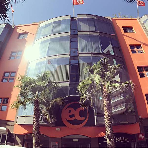EC馬爾他分校位於馬爾他的聖朱利安的市中心,學校一走出來就是公車站,要去馬爾他任何區塊都很簡單,因為這次顧問們也住在聖朱利安的市中心,所以我們走不到5分鐘就看到兩棟大樓,外面掛著大大的EC!😍😍終於看到它了,顧問們說!